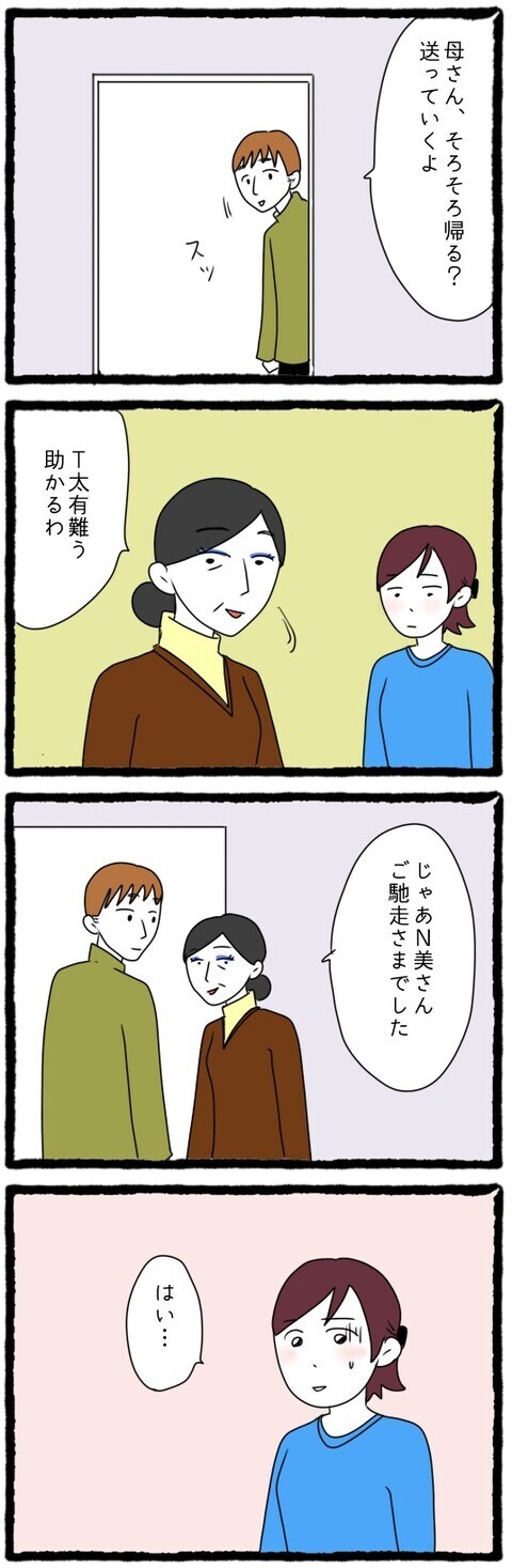N美の手料理を食べた義母は美味しいと言いながらも何かしら文句をつけたい様子。そしてまた、夫が席をはずした途端にモラハラ発言連発で…!