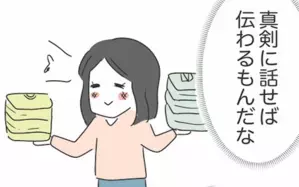 自分に何かあった時でも息子のことを一人で見られるようになって欲しいと夫にお願いするも、夫からは義母を呼べばいい、わからないことはネットで調べればいいと言い返されることに。そんな夫に対してようこは「知らないことの危機感を感じて」と伝えるも、またもや「働いているから」と言い訳を始めるのでした。夫からの反論に収拾がつかなくなると感じたようこは、「そうだね」と言葉を飲み込むことに。せっかくの話し合いも夫に理解してもらうことなく、終了します。
