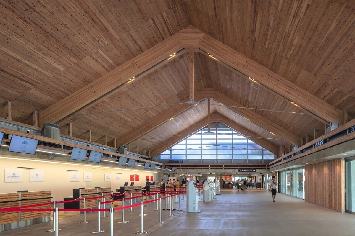 木をふんだんに使ったみやこ下地島空港。空港からレンタカーを直接乗り出しできて便利