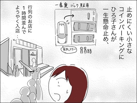 どうしてもとドレミさんが譲らなかったので、ひろ子さんが運転する車でケーキ屋へ。バック駐車って難しいですよね。