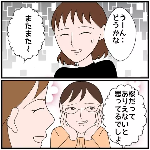 夫の同僚・芹との距離感に不安を抱く妻。帰省時に芹を車に同乗させるという夫の提案にショックを受けますが、夫は最終的に「妻が嫌がるから」と同乗を断ることに。そんな中、夫が妻の好物のプリンを買って帰宅したことに違和感を覚え、再度芹を送る件はどうなったのかと確認しますが、夫はあっさり「断った」と返答。モヤモヤは残りながらもひとまず安心して同窓会へ。そこで同級生たちの夫の交友関係ついて話題になります。「職場に仲の良い女性がいるより、夜のお店のほうがマシ」という友人の言葉に、妻は胸がざわつくのでした。