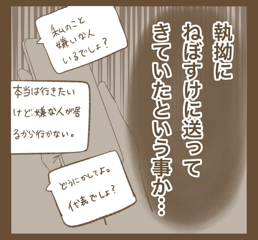 マキちゃんの不安定な言動に振り回され続けたねぼすけは、ついに心が限界に。マキちゃんは「自分のせいでねぼすけが休んだ」とグループを退室し、事態は混乱へ。そんな中、別のサークルメンバーが、マキちゃんが自分が「ハブられている」と主張する理由を教えてくれたのでした。