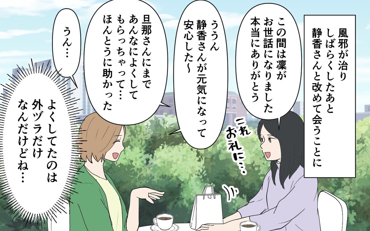 退院したママ友に会うと、夫が投稿した内容を褒められたのですが…。妻は、このときとばかりに夫の本性をママ友に暴露。季節が変わり、ママ友たち家族とBBQをすることに。なんでもできると思っている夫に対して、ママ友たちは色んなことを次々と頼みます。すると徐々に本性がバレていき、ついには娘に今までのすべての嘘を暴露されてしまい…!?