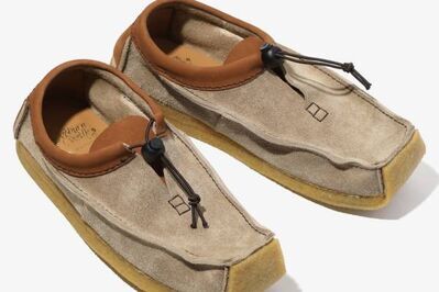 第1弾として登場するシューズ「QR モカシン」は、スエードアッパーにクレープソールを合わせたモカシンシューズ。英国伝統のフォルムをベースとしつつ、履き口には伸縮性ストリングとアジャスターを配し、機能的なディテールを加えた。また、弾力性のあるソールを採用し、足を包み込むような快適な履き心地に仕上げた。