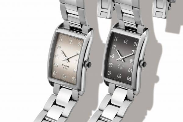 クラシックなスクエア型ケースが特徴の「トムフォード タイムピース」のアイコンウォッチ「N.001」に、2種類の日本限定カラーが仲間入り。繊細なヘアライン仕上げを施した上品なカラーのダイヤルは、落ち着いた大人の魅力を纏っている。