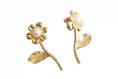 ミュベールから、エレガントなフラワーモチーフのアクセサリーが到着。パールが付いたゴールドのフラワーパーツが主役のイヤリングは、顔周りを華やかに見せてくれそうなインパクトのあるルックスが魅力的。しなやかに伸びる茎のカーブが、上品な印象を与えてくれる。