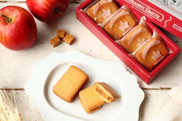 蜜漬けりんごを忍ばせたキャラメルクリームをしっとり食感のクッキー生地で挟んだ「アップルクリームサンド」は、どこか懐かしく、優しい味わい。“スミスおばあちゃん”のイラストが入った温もり溢れるパッケージは、自分へのご褒美はもちろん、ちょっとしたギフトにもぴったりだ。