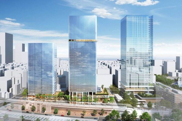 横浜・JR関内駅前の再開発「関内駅前地区第一種市街地再開発事業」によって、エンターテインメント施設や店舗、住宅などを備える2棟のビルが誕生。2029年度に竣工予定だ。