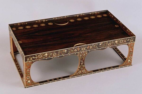 本展には、高貴な素材と技を駆使した、聖武天皇ゆかりの調度品を出陳。「木画(もくが)」と呼ばれる寄木細工の技法を用いて、鳥や唐草の装飾文様を施した双六盤《木画紫檀双六局》、草花や飛鳥などの地文様の上に書を表した屏風《鳥毛篆書屏風》など、聖武天皇の身近に置かれた最高級の調度品を紹介する。