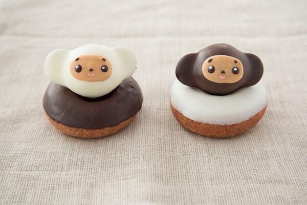 登場するドーナツは、チェブラーシカの顔がデザインされた可愛らしい見た目が印象的。「ころころチェブドーナツ」は中央から顔を出しているようなデザイン。耳はクーベルチュールチョコレートで作っている。また、「チェブとオレンジ」はチェブラーシカの頭の上に、かぼちゃチョコでコーティングしたオレンジを乗せている。