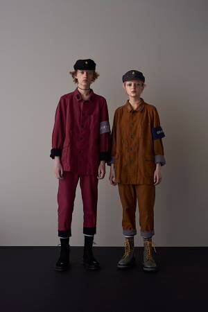 一方で、アナーキーなスタイルはアンダーカバーの世界へと溶け込んでいく。当て字で記したアンダーカバーのロゴ、アラビア語で“キケン”を意味する文字などは、この最高にパンクな洋服に国籍の無意味さも込めているよう。Tシャツには大きく真ん中に、スニーカーやグローブには片方ずつに配された「S」と「N」は、スピリチュアルとノイズを表す。