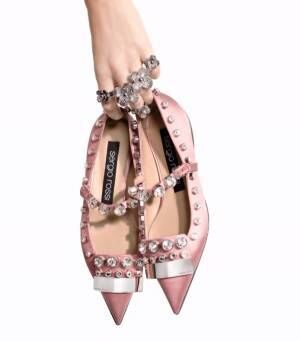 セルジオ ロッシの新シューズ「SRメリージェーン」クリスタルスタッズ×パウダーピンクのシルクサテン