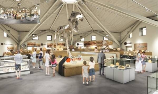新たに生まれ変わることで、地域一体型の観光施設へ変貌を遂げる。延べ床面積1,500m2となり、博物館コンテンツの更なる充実とパワーアップしたサービス施設棟を新設。玄武洞に纏わる“石の展示”をメインに、大迫力のティラノサウルスやアジアゾウなどの化石でたどる“生物・生命の歴史”など解説の幅を広げる。