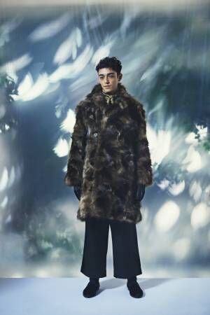 古く、荘厳で神秘的に見える様を表す言葉“かみさびる”が今季のテーマ。この語のもと、あらゆるものに魂が宿るとするアイヌのカムイ信仰をモチーフに、コレクションを構成している。動物的な表現や、民族調のディテール、厳しい寒さに適応するための重ね着や重厚な外套が散見された。