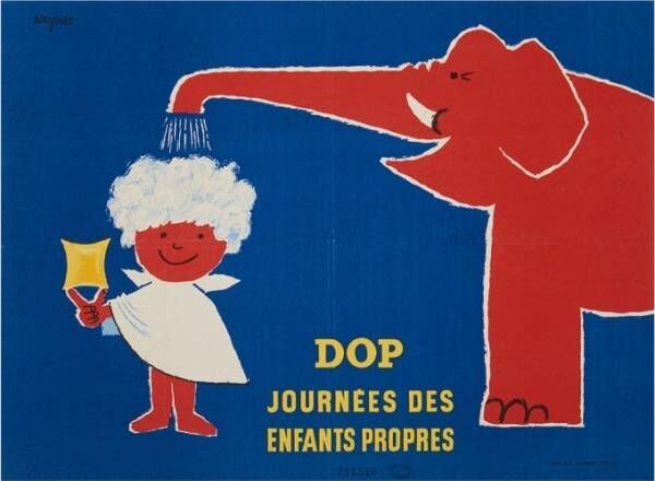 サヴィニャックの作風は、陽気でシンプル。装飾的な要素を排し、明快な造形と色彩でインパクトとユーモアのあるポスターを作り上げた。身近な食料品や日用品、シトロエン、ダンロップ、ティファールなど多彩な広告を手掛けたサヴィニャックは、「牛乳石鹸モンサヴォン」のためにデザインしたポスターで一躍注目を集める。牛と商品を組み合わせた、わかりやすく一瞬で目を引き付けるようなイラストが印象的だ。