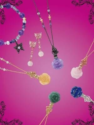 「ハッピーカラーストーンネックレス」には、薔薇の形を象った天然石を使用。一つ一つの石には異なるメッセージが込められている。