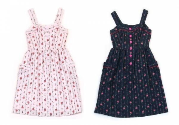 「ローズガーランド」シリーズでは、バラの花とサクランボをストライプに状にあしらったドレスやリボン付きブラウスなど、ロマンティックなピースを展開。