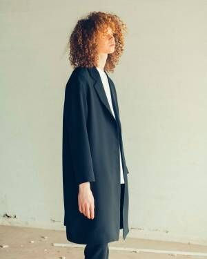 アイテムは全部で7型。新作として、ボタンを排除したチェスターコートや袖口にパイピングを施したロングスリーブ カットソー、程よいフィット感のトラックパンツをラインナップ。また、前シーズンに登場したボタンレスジャケットとワイドイージーパンツは、ブラックカラーに加え、新色のネイビーを用意する。
