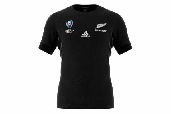 オールブラックスを象徴するシダの葉のロゴ「シルバーファーン」は左胸に、「ラグビーワールドカップ 2019」日本大会の公式ロゴは右胸に配された。間には、アディダスののロゴブランディングがあしらわれている。
