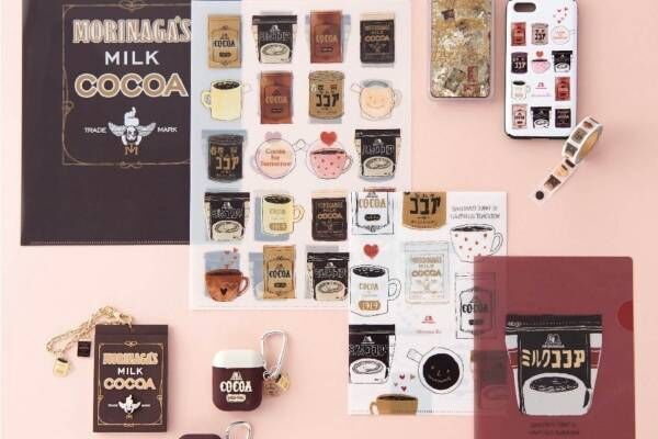 「森永ココア」100周年を記念した限定アイテムは、約60点を用意。1918年に誕生した森永ココアの初代パッケージから、過去のアートまで歴代のパッケージをイラストで表現したクッションやミニトレー、iPhoneケース、マスキングテープなどの雑貨・文具などを展開する。
