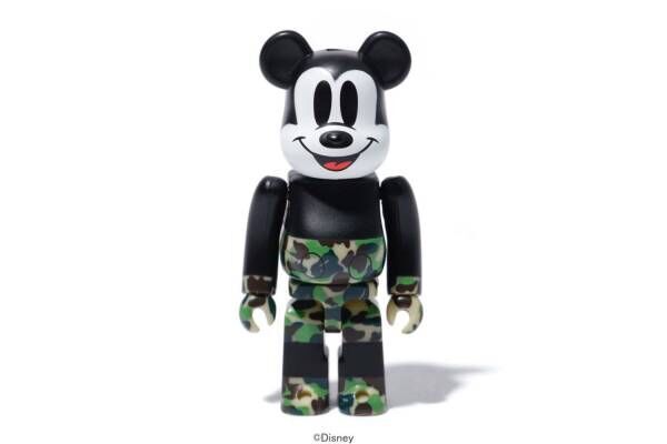 ミッキーマウスの“カモ柄”フィギュア&ベアブリック、ア ベイシング エイプとコラボ