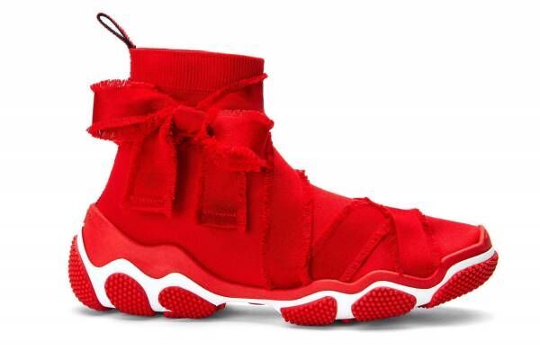 レッド ヴァレンティノ“真っ赤な”「グラムラン」スニーカー、バレエシューズのようにリボンを纏って