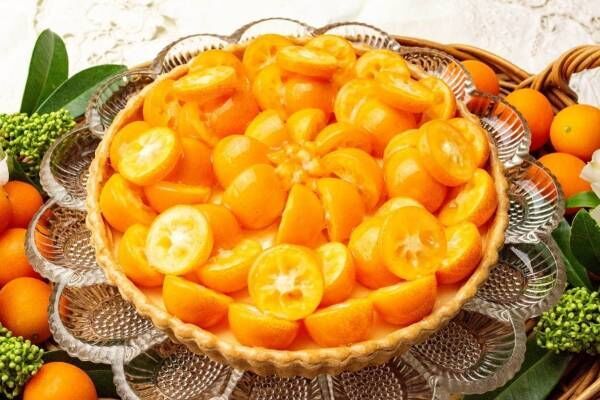 タルト生地の上には、皮も果肉も甘みが強く食べやすい金柑を、カスタードとオレンジリキュールシロップ合わせてトッピング。フレッシュな金柑を丸かじりするような、ジューシーな美味しさを堪能してみて。