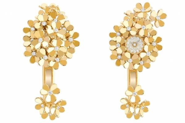 両者にあしらわれたのは、ハート型の可憐な花びらに、ダイヤモンドを組み合わせたラグジュアリーな小花モチーフ。春の柔らかな日差しをたっぷりと浴びているかのような、まばゆい輝きが印象的だ。