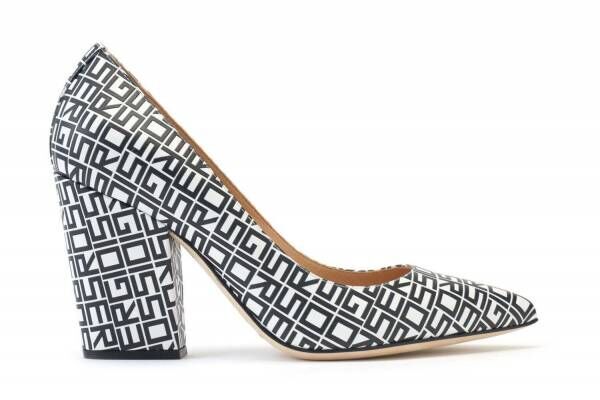 60年代のアーカイブから採用されたスペシャルロゴのオールオーバープリントをあしらったパンプスやミュール、スニーカーが新登場。鮮やかなコントラストを描く、ブラックとホワイトのツートーンカラーがアイキャッチだ。
