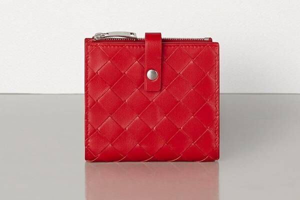 注目は、メゾンを象徴するクラシカルな編み込みレザー“イントレチャート”を取り入れたミニウォレット。手のひらサイズの2つ折りウォレットは、単色のミニマルなデザインながらも、レザーの編み込みによる、洗練された表情美が印象的。また札入れやジップ付きコインポケットをはじめ、6つのカードケースを備えるなど、そのスリムな見た目以上の高い収納力を備えている。