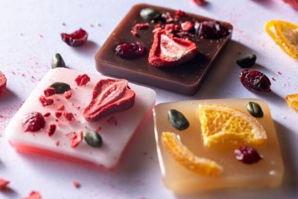 フレーバーは、2つの食感が楽しめる2層羊羹に苺やクランベリーを合わせた「うすべに」、やわらかな甘さの白ようかんに国産オレンジと甘夏柑が爽やかなに香る「だいだい」、クーベルチュールチョコレートを練り込んだショコラ風味の羊羹の味わいを苺やクランベリーの甘い香りが引き立てる「しょこら」の全3種類。