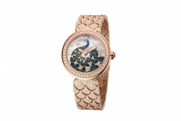 ブルガリ"クジャク"モチーフのウォッチ、本物の孔雀の羽根を並べ"目"を表現したダイアル