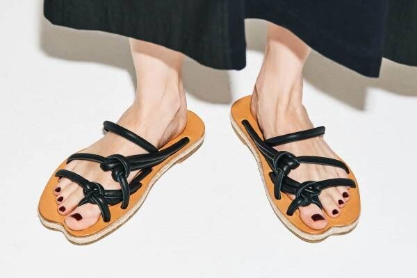 アキラナカ“結び目”ストラップ×足型ソールのフラットサンダル、“円錐ヒール”のミュールも
