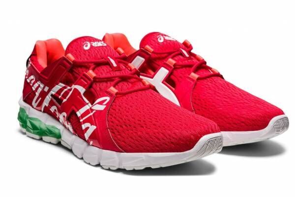 ベースモデルは、衝撃緩衝材「GEL」テクノロジーを搭載してクッション機能を高めた、機能性シューズ「クォンタム90」。ポップなデザインなので、スポーツシーンなどの場面に取り入れれば、より明るくアクティブにスポーツを楽しめそうだ。