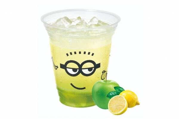 「ジェリー in ソーダ グリーンアップル レモネード ミニオン」は、味・見た目共に爽やかなレモネード。レモネードソーダをベースに、甘酸っぱい風味の青リンゴ「グラニースミス」のソースをプラスした。瀬戸内レモンの果汁入りジェリーを加えて、ジューシーな酸味と食感も楽しめる1杯に仕上げている。