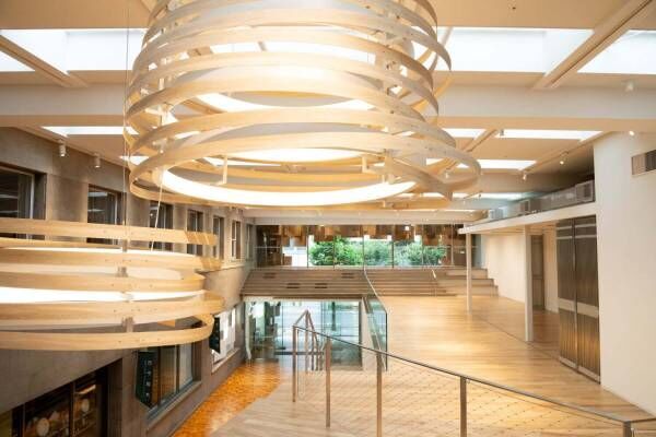 今回、2度目のリノベーションにより、アトリウムスペースが生まれ変わる。設計・デザインは再び隈研吾が手掛け、ガラス製のファサードの一部に孔をあけて“雲”をイメージしたウッドパネルを施し、烏丸通に面した開放的なテラスを創出。屋内には、ベンチとしても機能するダイナミックな階段を新設する。