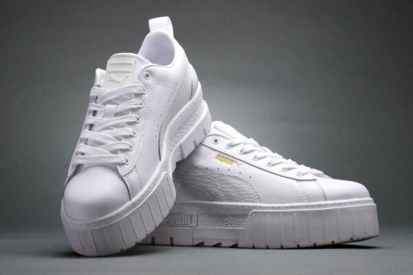 プーマのウィメンズ厚底スニーカー「メイズ」オールホワイト&ブラックの新作