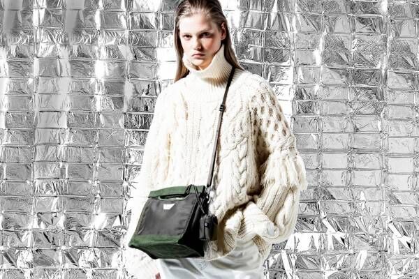 アイテムは、フォーサムワンのコレクションの着想源である“ヴィンテージミリタリー”をイメージし、オリーブカラーに統一。 バックパックやボックスバッグは、実際のミリタリーアイテムにも使用される素材使いがポイントで、表面にバリスティックナイロンとヌバックレザーを、ライニングに綿スレキを用いている。