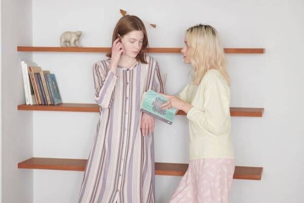 「ダブルガーゼ」は、コットン100%のガーゼを2枚重ねることで、ふんわり柔らかな肌触りを実現させた人気シリーズ。新作は、表裏に異なる色柄を採用することで、袖口をまくり上げた際に別色がアクセントになるユニークなデザインで展開。チェック柄とストライプ柄がラインナップし、いずれもパジャマタイプとシャツワンピースタイプが揃う。
