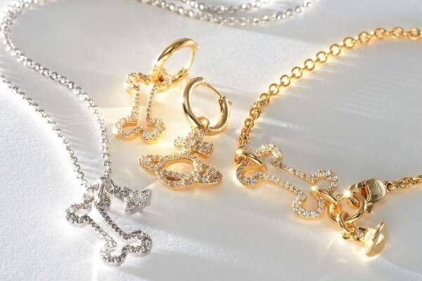 ヴィヴィアン・ウエストウッド レッドレーベルの新作は、ブランドのアイコンである「ORB(オーブ)」と骨を象った「BONE(ボーン)」がモチーフ。ゴールドまたはシルバーの地金にキラキラと輝くストーンをあしらって、華やかに仕上げたペンダント、ブレスレット、イヤリングがラインナップする。