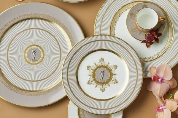 ウェッジウッド“グレージュ×ゴールド”の華やかテーブルウェア、古代ギリシャ着想のモチーフを配して