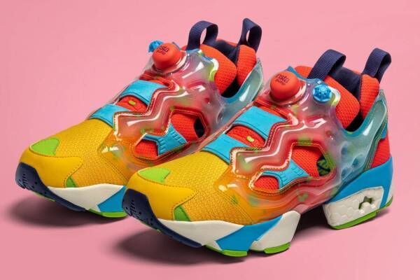 中でも特に注目したいのは、リーボックを象徴する「インスタポンプフューリー(INSTAPUMP FURY)」をベースにしたモデル。「ジェリーベリー」の数あるフレーバーの中から、サワーチェリーやベリーブルー、ピンクグレープフルーツといった、特にビビッドでエネルギッシュなカラーのフレーバーを厳選。鮮やかなマルチカラーに仕上げたアッパーに透明感あるパーツを重ねることで、ジェリービーンズの質感まで表現したユニークな一足だ。