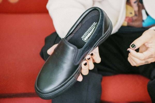 3回目となる両ブランドのコラボレーションスニーカー。これまでコンバース(CONVERSE)のスリッポンシューズをベースに採用してきたが、今回はスケートに適した機能を搭載するコンバース スケートボーディングのモデルを用いる。
