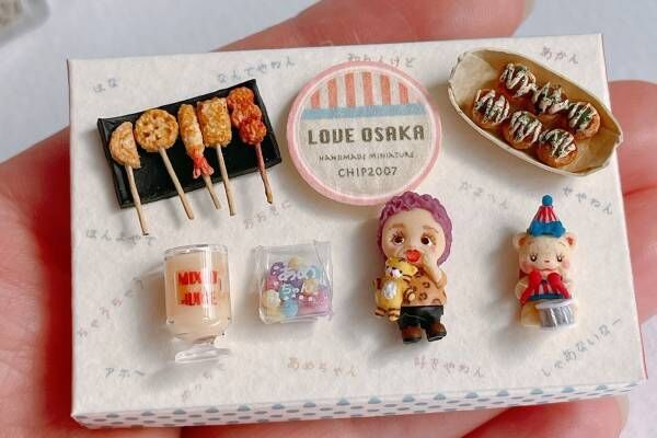 「ミニチュア写真の世界展」大阪で、ミニたこ焼きや"さつまいものイヤリング"など限定グッズも