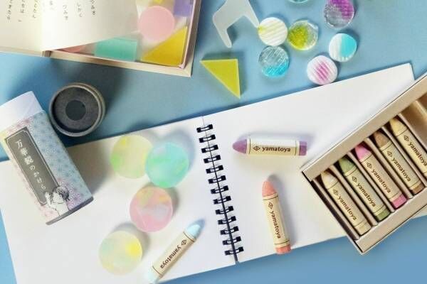 越之雪本舗大和屋からは、おはじきやクレヨンをモチーフにしたスイーツが登場。本物そっくりの「あまいおはんじき」は、透明感のある瓶に入れて、「おいしいおえかき」は紙箱に入れて提供される。