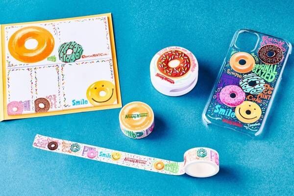 モチーフに選ばれたのは、クリスピー・クリーム・ドーナツを代表する「オリジナル・グレーズド」や「チョコ スプリンクル」、「スマイルドーナツ」といった定番人気ドーナツ。カラフルでポップなデザインに仕上げたオリジナルグッズには、iPhoneケース、マグネット、付箋、マスキングテープの全4種が揃う。