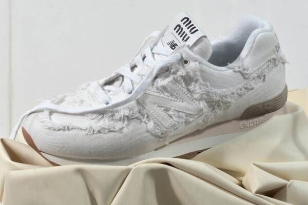 ミュウミュウ×ニューバランスのコラボスニーカー、「574」を“切りっぱなしデニム”でアレンジ