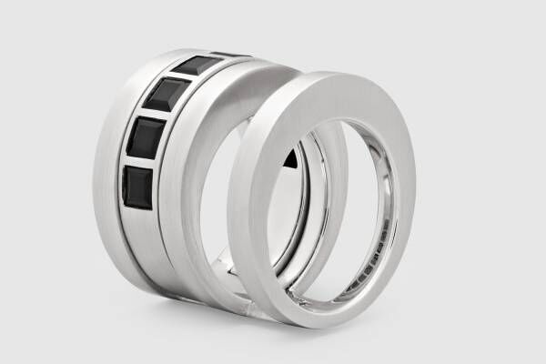 トムウッド新作ジュエリー「ボルト」建築着想のリング&ピアス、オニキスやガーネットの輝きと共に