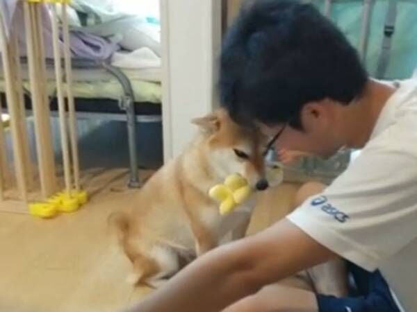 「ママとチューしようかな?」 すると、頑固な柴犬の態度に変化が