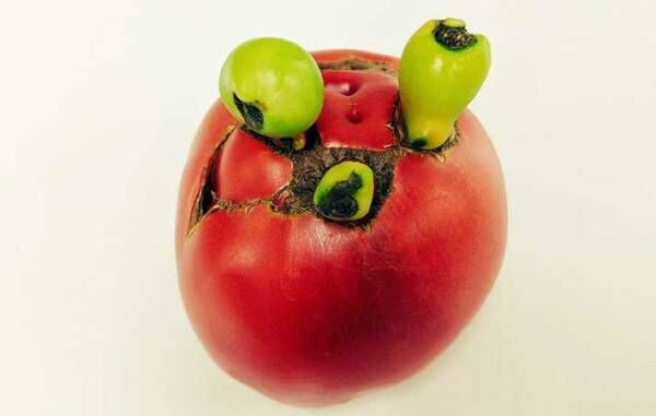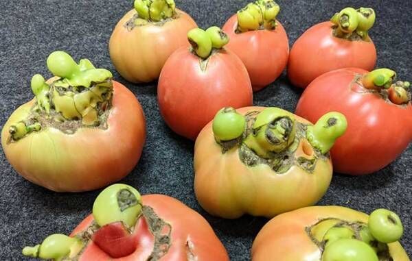 フルーツトマトを専門に販売している、曽我農園(@pasmal0220)さんが撮影したトマトは、おどろおどろしい形をしていました。